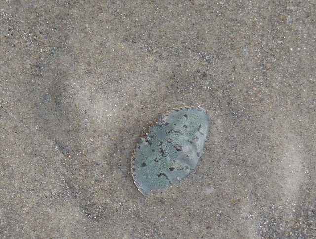 Dungeness crab1 by CM ParsonsMost of the “dungies” that I encountered on sandy beaches were small — the carapace about an inch (2.5 cm) across. That’s nowhere near the 5.75-inch (14.6 cm) minimum size for the fishery or the full-grown 9-inch (23-cm) adults. These little dungies were juveniles somewhere around 1 to 2 years after hatching. Dungeness crab2 by CM ParsonsLittering the beaches I found mostly live hard-shells and soft-shells, and later in the summer, discarded molts (it’s sometimes hard to tell the difference without handling them – carefully). Little crabs on their backs kicking wildly appeared very much out of their element.