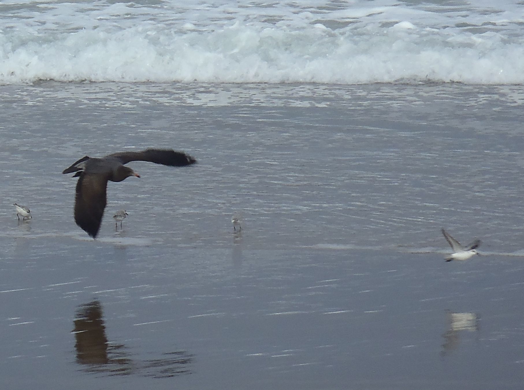 There were three Heermann’s gulls on the beach, two immature and one mature, and over a period of about 15 minutes, I watched as each chased the sanderlings in the same manner.