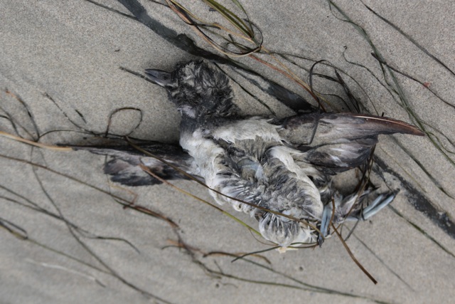 There’s definitely a UME happening this winter. Thousands of young Cassin’s auklets (Ptychoramphus aleuticus) have washed onto beaches from Canada to Southern California. On one short beach walk I counted 50 dead birds. This is very unusual. These are seabirds that I’ve seen on whale-watching trips, not on beach walks.
