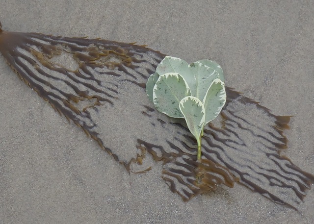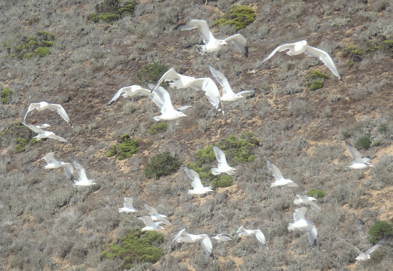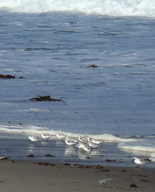 Our next beach sighting was an old barge that no one seems to know much about except that it’s on the beach. This is a rough section of coast and supposedly someone was towing this barge and somehow it got loose and ended up here. This year most of it was exposed; last year most of it was covered by sand and I almost missed it when I walked past. I’m amazed how much the sand along these beaches can move. This stretch of beach is more for wildlife than people and is designated the Salinas River National Wildlife Refuge. We saw large flocks of gulls (mostly Western gulls of various ages) and sanderlings. This is also home to the Western snowy plover (Charadrius alexandrinus), designated a threatened species due to loss of nesting habitat (they nest on the sand) and human disturbances (people, pets and their activities on the sand). This remote spot is hopefully a good place for them.