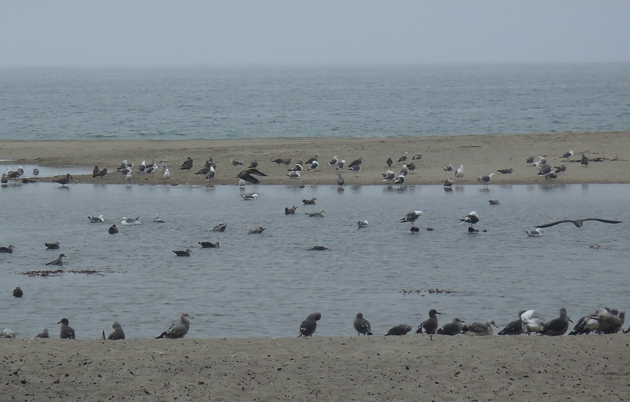 The wildlife highlight of this stretch of shoreline was the gulls. On several occasions we saw large mixed flocks of Heermann’s gulls, Western gulls and (I think) a few California gulls. This group was at the mouth of Aptos Creek in a little seaside town called Rio Del Mar (the Rio being the creek). It’s a great spot to relax.