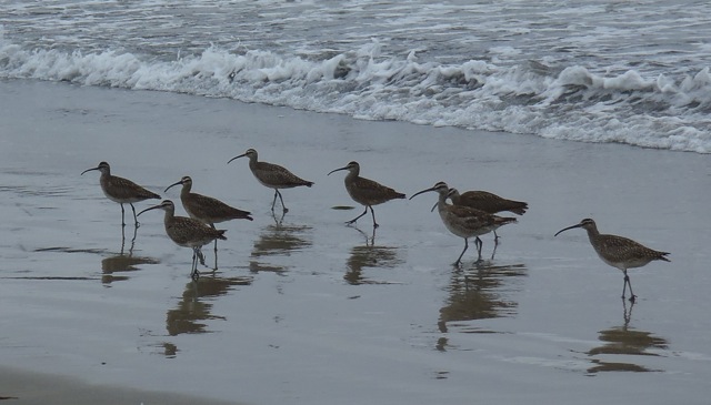 I know it’s still summer (Northern Hemisphere) and we’re getting more sunshine during the day (summer fog nearly gone). But we’re also starting to feel just a nip in the air especially in the evening. Autumn is on its way. In anticipation of the change of season, I thought I’d share with you a few of our fall/winter shoreline visitors, such as these whimbrels. I anticipate I’ll see more of these shorebirds in the coming weeks and months. These shots were taken on beach walks from February through July.