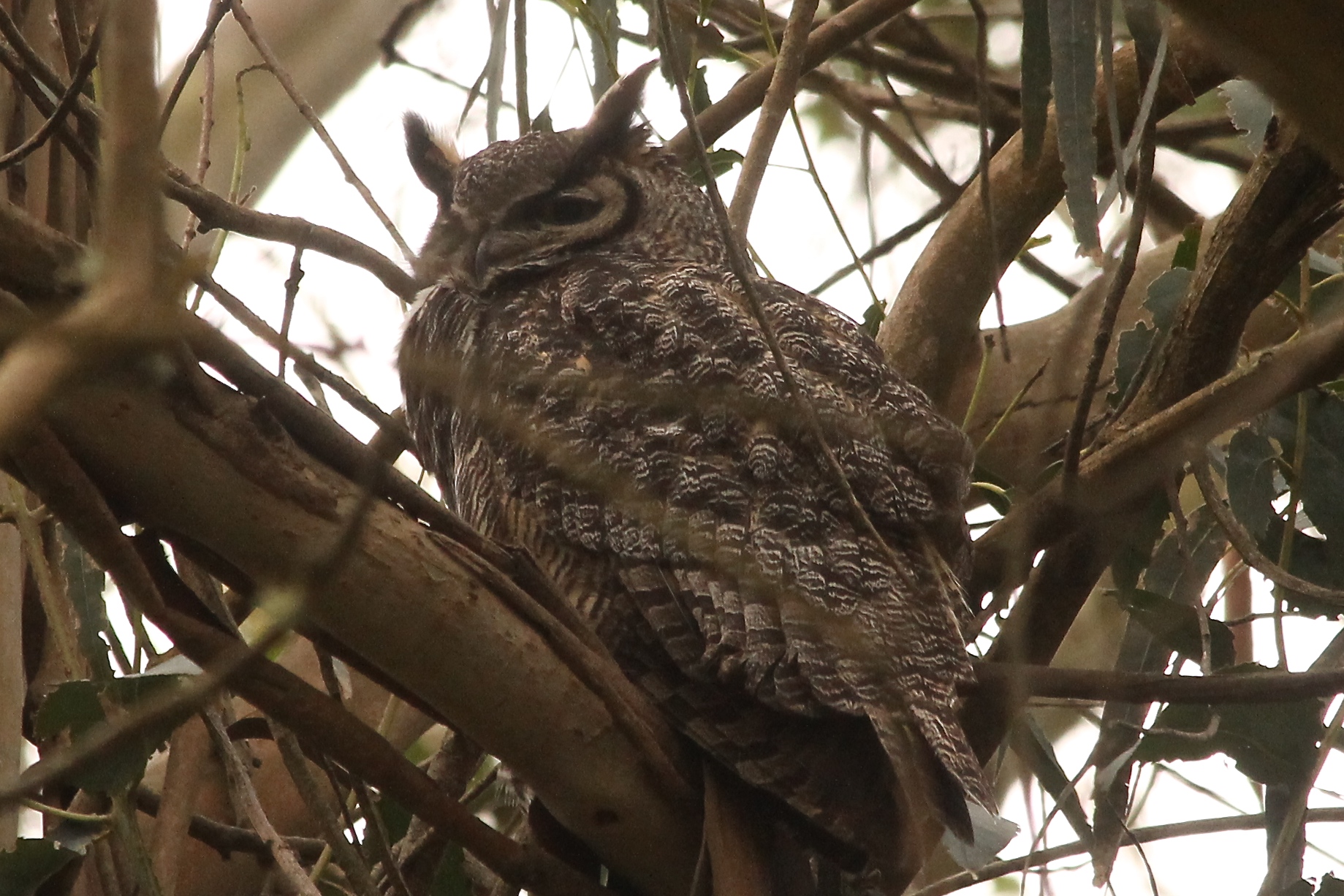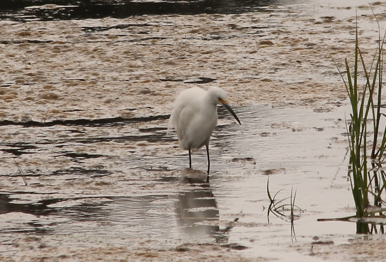 As odd as it seems, we got really excited about blackbirds! That’s because this first photo is of a Tricolored Blackbird, and the second shows a flock with a few Red-winged Blackbirds mixed in. Since it’s not breeding season, the epaulettes are mostly hidden. But if you look at the tricolored bird’s shoulder, you’ll see a pale white stripe. This is the edge of the red patch and distinguises it (among other characteristics) from the red-winged species. What was exciting was that we had just begun our walk and found so many Tri-colored Blackbirds together, and the first time I’ve ever seen one. Good start. More later.”